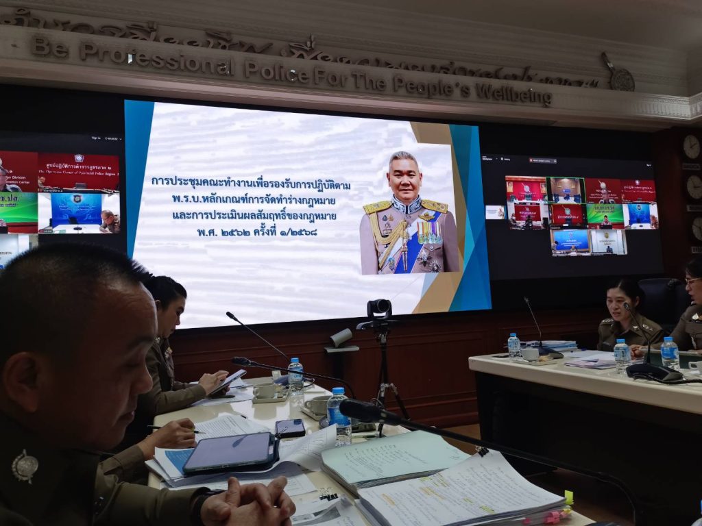 พล.ต.ต.ดนุ กล่ำสุ่มผบก.กม.ได้มอบหมายให้พ.ต.อ.กมล เอื้อจารุพรพ.ต.อ.ธนธัช ปานวงษ์รอง ผบก.กม.พร้อมด้วยกลุ่มงานกฎหมายและกลุ่มงานพัฒนากฎหมายเข้าร่วมประชุมคณะทำงานเพื่อรองรับการปฏิบัติตาม พ.ร.บ.หลักเกณฑ์การจัดทำร่างกฎหมายและการประเมินผลสัมฤทธิ์ของกฎหมาย พ.ศ.2562 ครั้งที่ 1/2568 โดยมี พล.ต.อ.นิรันดร เหลื่อมศรี รอง ผบ.ตร.(กม) เป็นประธาน ณ ศปก.ตร. อาคาร 1 ชั้น 20 ตร.